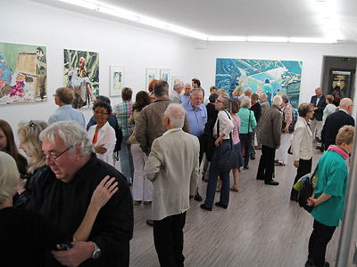 Sondersausstellung in der Rathausgalerie Brühl Ekkehard Drefke: Charakterologien"MalereiAusstellung vom 10. bis 23. Juni 2015 Die von dem Brühler Künstler Ekkehard Drefke geplante Ausstellung konnte von ihm nicht mehr realisiert werden, da er unter tragischen Umständen am 7. Mai 2015 in Venedig ums Leben kam. Da Drefke langjähriges Mitglied im Brühler Kunstverein e.V. und im Kunstverein Wesseling e.V. war, haben die beiden Vereine die Aufgabe übernommen, die Ausstellung zu seinem Andenken durchzuführen. Ausgestellt wurden u.a. gerade 2015 vollendete Bilder zu Shakespeares "Der Sturm" und eine Serie Aquarelle zu den zwölf Tierkreiszeichen. Weitere Informationen zu Ekkehard Drefke unter www.drefke.de Die Eröffnung |