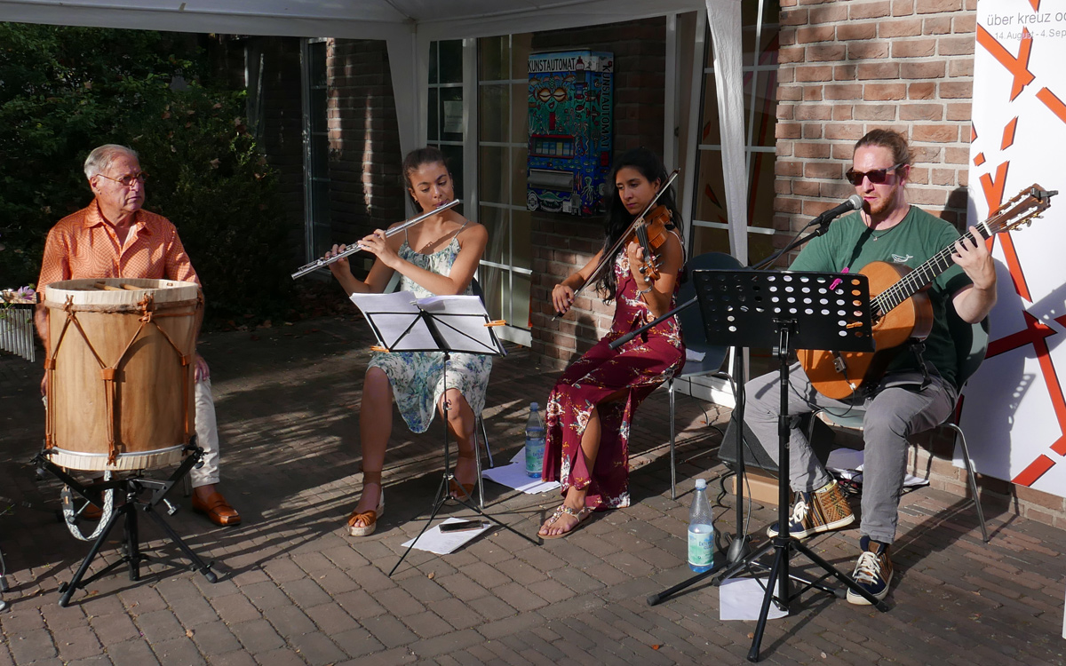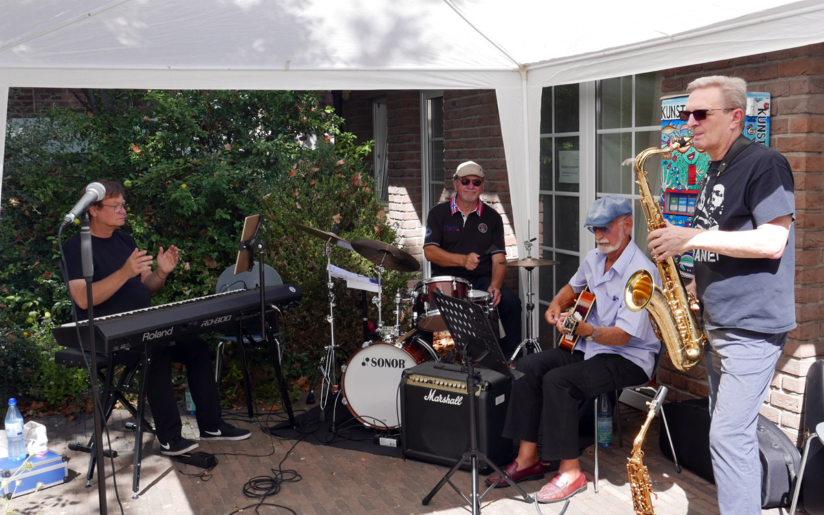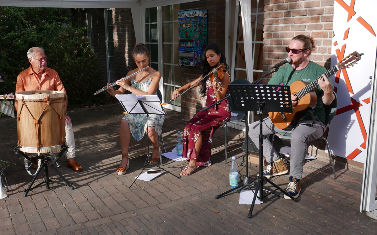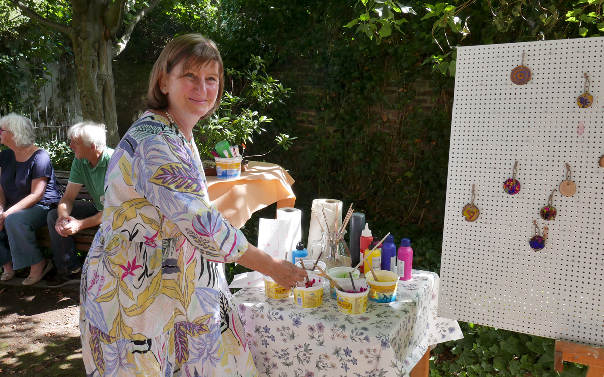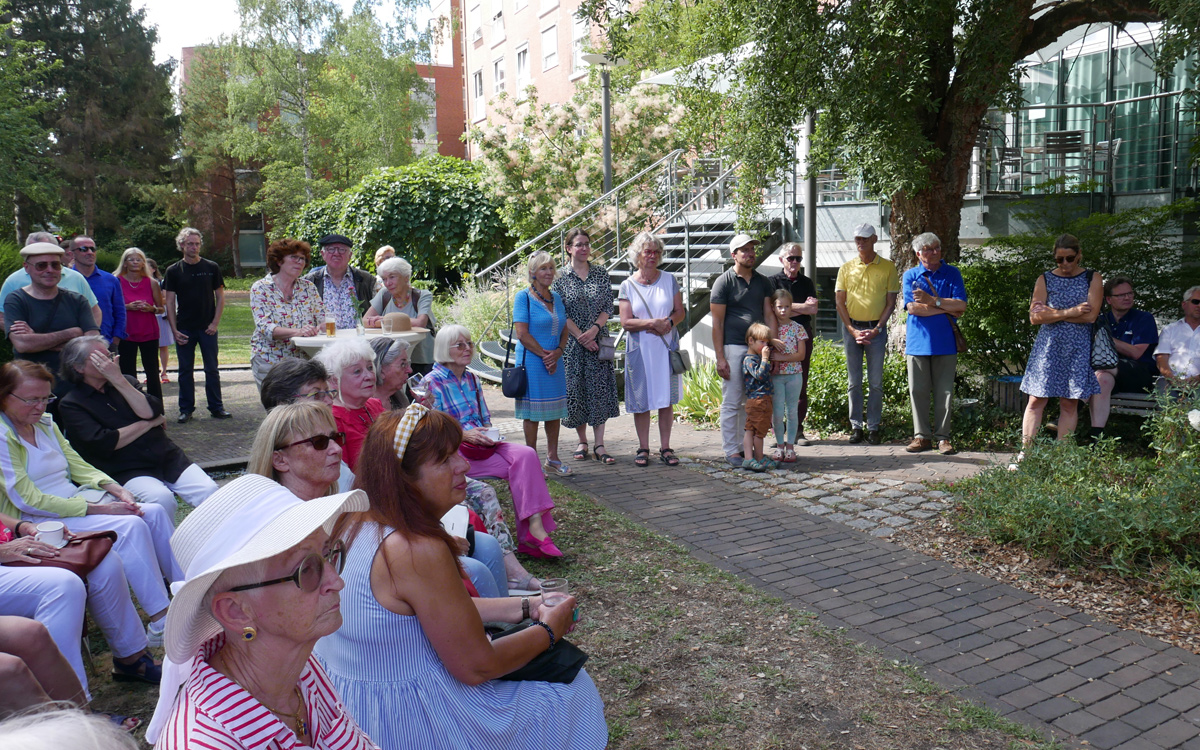 In den Patientengarten des Marienhospitals - GFO Klinik Brühl wurden die Mitglieder des Kunstvereins sowie alle (Kunst-)Interessierten am 21.8.2022 zu einem Feiernachmittag eingeladen. Neben Livemusik von zwei Bands, leckeren Speisen und Getränken und einer künstlerischen Mitmach-Aktion wurden zwei besondere Attraktionen präsentiert. Zunächst die begehbare Rauminstallation "über kreuz oder quer" von Achim Zeman in der Alten Schlosserei. Und außerdem wurde ein Film von Thorsten Kleinschmidt gezeigt, der eine besondere Bauaktion mit LEGO-Steinen in Brühl wiedergibt, die von der Vorsitzenden Gaby Zimmermann speziell zum Jubiläum initiiert wurde. Diese Aktion geht auf das weltweite Projekt "Dispatchwork" des Künstlers Jan Vormann zurück. Diese nachhaltige und leicht surreale Performance passt ideal nach Brühl, in die Stadt der Schlösser und des Geburtshauses von Max Ernst.