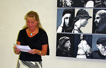 ![]() Marlies Blauth: Menschen (2011/2012), Collage/Malerei auf Leinwand, je 40 cm x 30 cm ![]() Marlies Blauth: "Menschen" Präsentation in der Alten Schlosserei ![]() Marlies Blauth: "Tagebuch - Stundenbuch" Präsentation in der Alten Schlosserei Katalog![]() Zu den Ausstellungen erscheint ein Katalog. Preis 5 Euro, 3 Euro/Mitglieder Bilder von der Eröffnung![]() Die Künstlerin Marlies Blauth ![]() Marie-Therese Brämer, Stellvertretende Bürgermeisterin der Stadt Brühl ![]() Gaby Zimmermann, Vorstand BKV, begrüßt die Gäste, Ekkehard Drefke hält die Einführung ![]() Besucher der Vernissage diskutieren lebhaft vor den Exponaten Aufnahmen: G.M.Wagner |