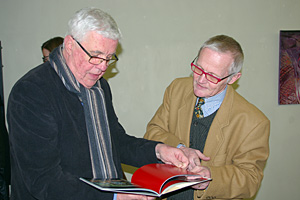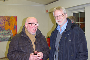 ![]() Ulrike Dornis vor einer ihrer Arbeiten ![]() Reger Besucherandrang bei der Vernissage am Freitag Abend. ![]() Auch der neue Brühler Bürgermeister Dieter Freytag (r) gehörte zu den Gästen. Bilder: G.M.Wagner | |