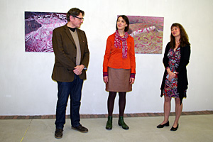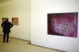 Bilder von der Eröffnung![]() Vorsitzende Gaby Zimmermann (r) eröffnete die Ausstellung und begrüßte die Künstlerin Ulrike Dornis und den Kunsthistoriker Reinhard Buskies. ![]() Die Gemäldeserie "Arabeske" hat ein Tuch aus Kairo zum Thema. ![]() Die Kunstvereinsmitglieder Boll und Müller (r) im Gespräch. |